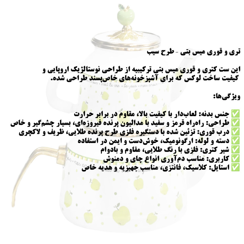 ست کتری و قوری میس بتی مدل MON AMOUR گنجایش کتری 2 لیتر گنجایش قوری 1 لیتر