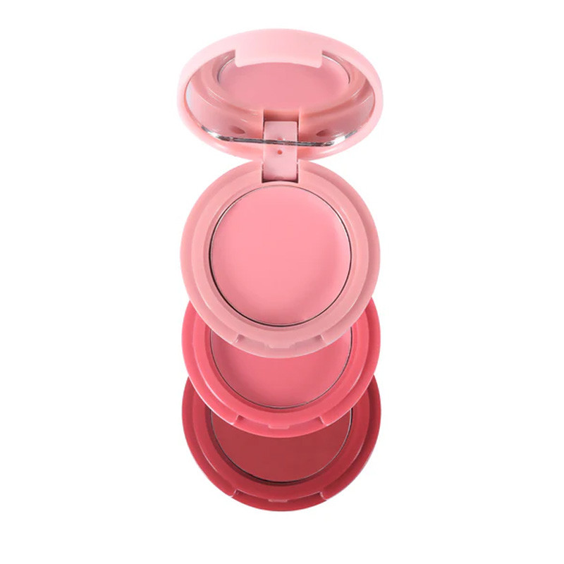 پالت های رژ لب و رژگونه شیگلم مدل Cheek & Lip Cream Stack با اندازه خیلی کوچک، سه رنگ رژ را در خود جای داده اند. این پالت های کوچک و جیبی، دارای یک آینه تعبیه شده نیز هستند. بافت این محصول کِرمی، فینیشینگ مات دارد و برای لب و گونه مناسب است.