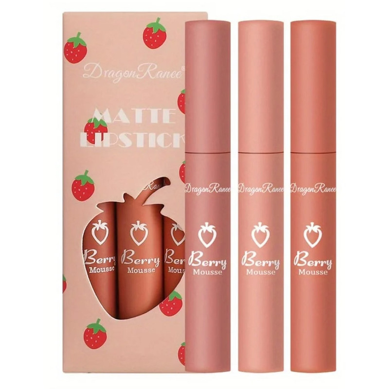 پک رژ مایع دراگون رانی از محصولات آرایش لب میباشد. شامل چهار طیف رنگی جذاب است. و هرپک شامل 3 عدد رژ لب مایع مات با رایحه توت فرنگی هستند. رژ مایع دراگون در طیف رنگهای جذاب این پک ها که رنگ های نوود و قرمز و گوشتی را شامل میشود. رنگ رژ ها بعد از خشک شدن روی لب کاملا مات میشوند. بافت و ساختار رژ مایع توت فرنگی کاملا گیاهی بوده و بدون سرب میباشد. به علت گیاهی بودن این محصول، بدون تست حیوانی است که از ویژگی های عالی بودن و باکیفیت بودن این محصول پرفروش است.