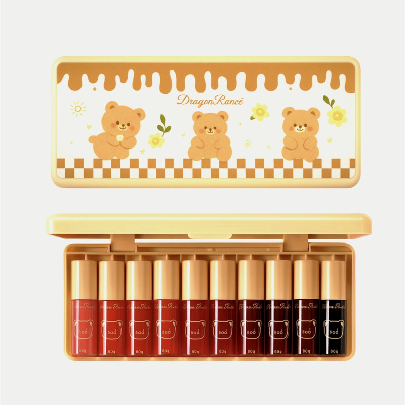 پک ۱۰ عددی تینت لب دراگون رانی مدل خرسی یک انتخاب جذاب، کاربردی و اقتصادی برای افرادی است که به دنبال رنگهای متنوع، پوشش یکدست و ماندگاری بالا هستند. این مجموعه شامل ۱۰ رنگ پرطرفدار از تناژهای صورتی، قرمز، نارنجی و تمهای تیرهتر است که هم برای آرایش روزانه و هم میکاپ حرفهای مناسب میباشد.