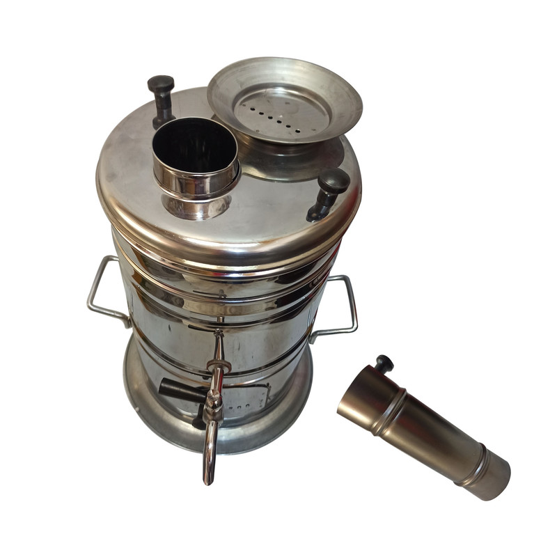 سماور زغالی مدل 2544 تولید در ظرفیت های 5 الی 8 لیتری با سوخت هیزم این امکان را فراهم کرده است تا دوستداران و علاقه مندان چایی در طبیعت با لذت خاص این طعم متفاوت را تجربه نمایند این سماور محل مخصوص کتری را نیز دارا می باشد همچنین با مجهز بودن به دودکش 20 سانتی این شرایط را فراهم کرده است در زمان کوتاه زغال را فراهم کرده و هرچه سریعتر آب را به جوش آورد همچنین این محصول درب تعبیه شده از قسمت جلویی دستگاه را دارا می باشد که جهت اسفاده از چوپ های ضخیم تر از آن استفاده کنید همچین محصول دارای توری مخصوص جدا کننده زغال از خاکستررا دارا می باشد