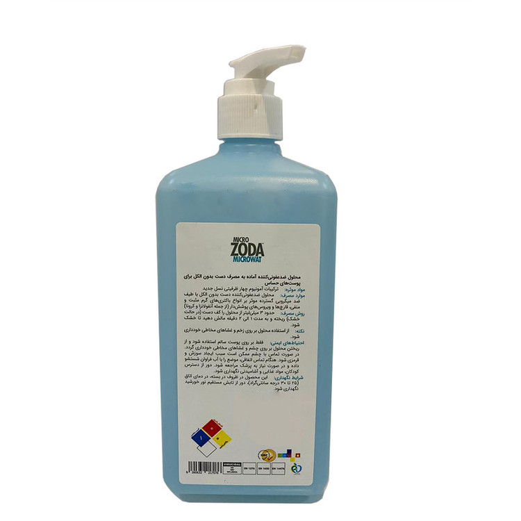 سایر توضیحاتحدود 3 میلی لیتر از محلول را کف دست (در حالت خشک) ریخته و به مدت 30 ثانیه مالش دهید. - پمپی