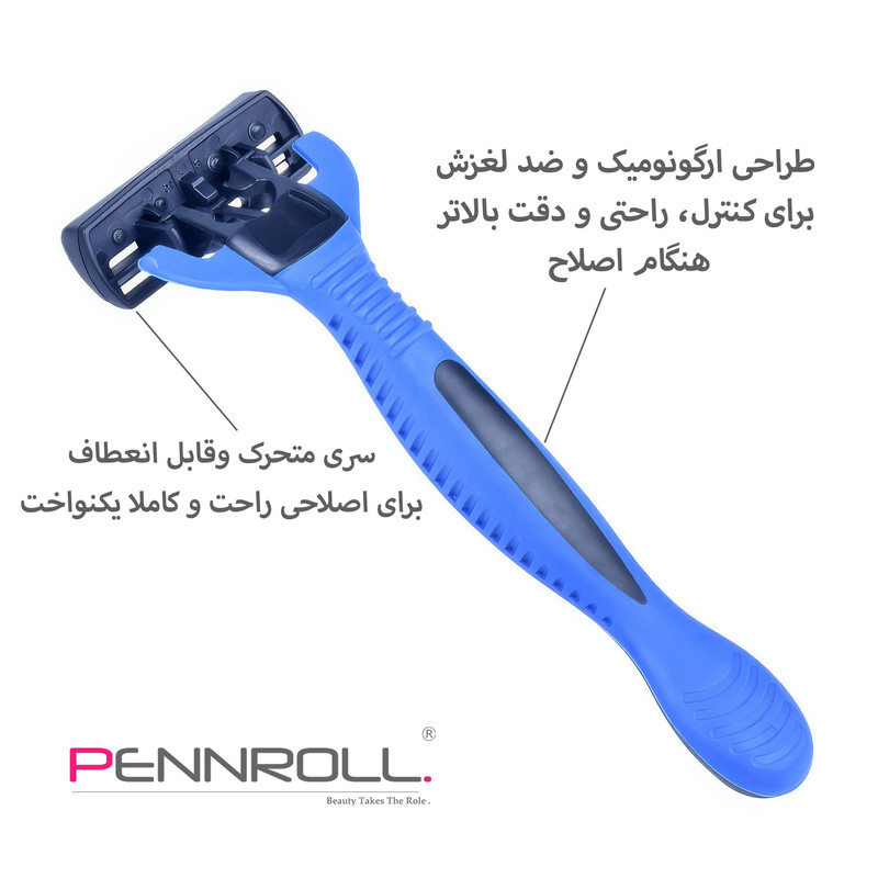 طراحی دسته خودتراش پنرول کاملاً ارگونومیک و خوشدست است تا هنگام اصلاح، بدون هیچ زحمتی آن را کنترل کنید. پوشش رابر (Rubber) در قسمت روی دسته، از لغزش و سر خوردن خودتراش جلوگیری کرده و حتی در شرایط مرطوب، کنترل و تسلط شما را حفظ میکند.