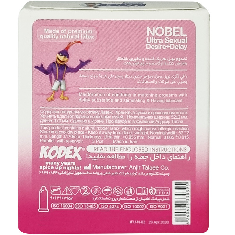 کاندوم ناچ کدکس مدل Nobel بسته 3 عددی