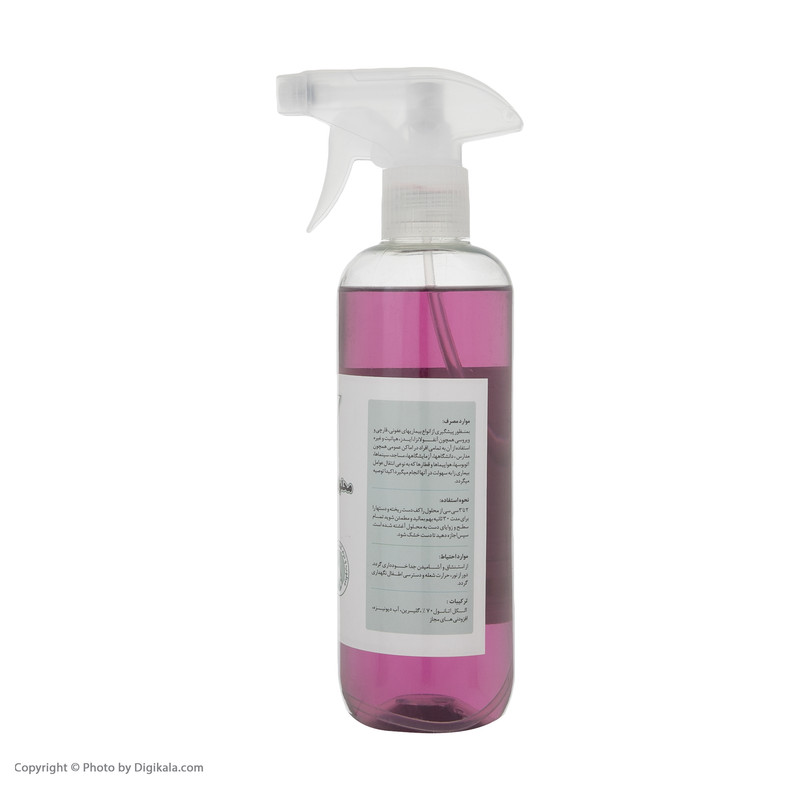 نحوه استفاده :2 تا 3 مرتبه از محلول را بر روی دست ها اسپری کرده و دست ها را برای مدت 30 ثانیه به هم بمالید مطمئن شوید تمام قسمت ها به محلول آغشته شده است سپس اجازه دهید تا دست ها خشک شود و نیازی به شست و شوی دست نیست.