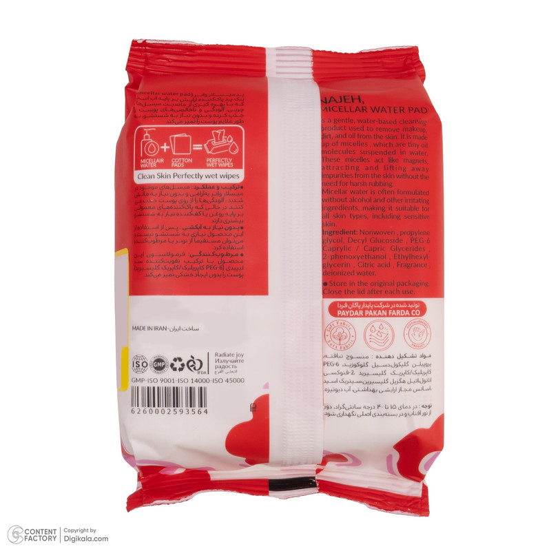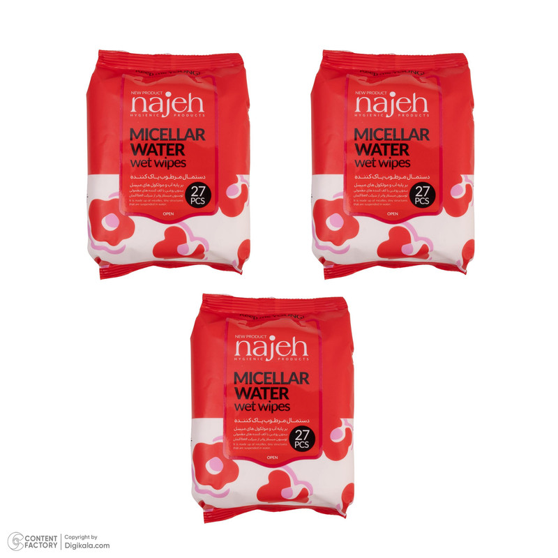 دستمال مرطوب ناژه مدل Micellar Water بسته 27 عددی مجموعه 3 عددی ، انتخابی ایدهآل برای پاکسازی پوست شماست. این محصول به آرامی و بدون نیاز به آبکشی، آلودگیها و ناخالصیها را از روی پوست پاک میکند و در عین حال، فرمولاسیون ویژه آن با ترکیب تقویتکننده سد لیپیدی پوست، از ایجاد خشکی جلوگیری میکند.