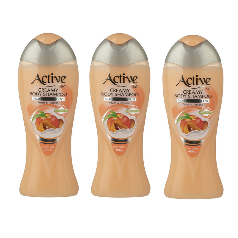 شامپو بدن اکتیو مدل هلو بادام وزن 400 گرم بسته 3 عددی