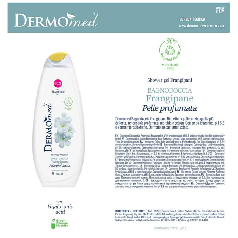 شامپو بدن (ژل شستشوی بدن) درمومد با رایحه دلپذیر و خواص بی نظیر گل یاسمن به پوست احترام می گذارد و حتی ظریف ترین پوست ها را معطر ، نرم و ابریشمی می کند. این محصول حاوی اسید هیالورونیک، pH 5.5 و بدون میکروپلاستیک بوده و از نظر درماتولوژی تست شده است. این محصول جدید در حجم 650 میل طراحی و عرضه گردیده است.
