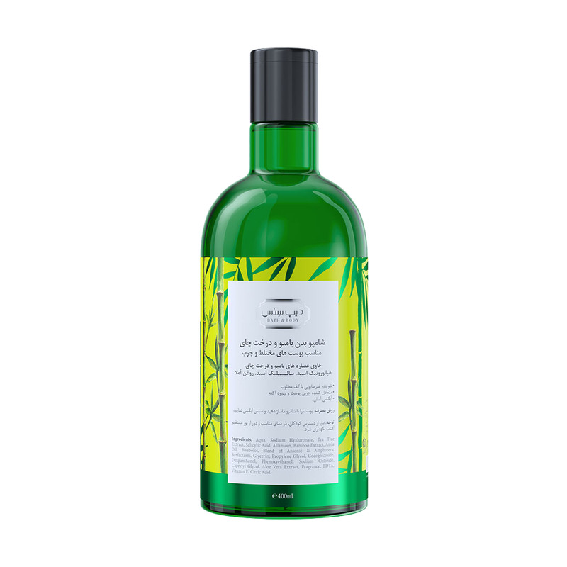 شامپو بدن دیپ سنس مدل بامبو و درخت چای مناسب پوست های چرب و مختلط حجم 400 میلی لیتر
