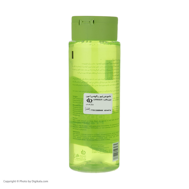 این محصول دارای یک آنتی اکسیدان قوی و فعال در برابر رادیکالهای آزاد است. استفاده از این محصول ضمن پاکیزکی کامل بدن از آلودگیها، به جوانسازی پوست کمک میکند. این محصول را میتوان یک آب رسان خوب و یک نرم کنندهی عالی دانست. استفاده از این شامپو بدن در مرور زمان سبب شفافیت پوست شده و یک روشن کننده خوب خواهد بود. یکی از خاصیتهای مهم پوست، خاصیت ارتجاعی آن است که این محصول به خوبی از آن محافظت میکند. همهی این تاثیرات خوب به دلیل وجود عصارهی آلوئه ورا و لیمو با خواص درمانی خوبشان است.