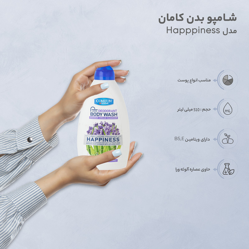دستهبندی: شامپو بدنترکیبات: دارای عصارهصادرکننده مجوز: سازمان غذا و دارومناسب برای: آقایان , خانمهاشماره مجوز: 56/26591