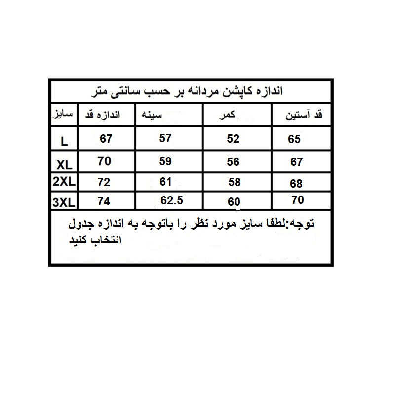 کاپشن بهاره مردانه پارچه مورد استفاده کره ای دوخت دوماکو به صورت زیپ ودگمه بازو بسته میشود .دارای آستر نخی ضد عرق کردن دارای تن خور بسیار زیبا ومورد استفاده تمام فصول غیر از تابستان