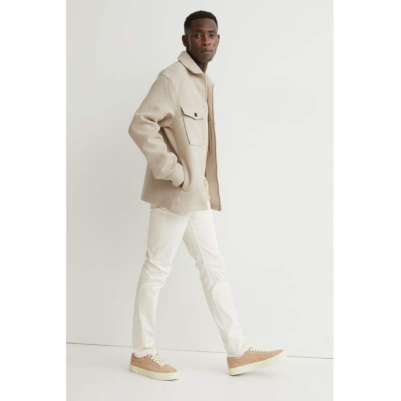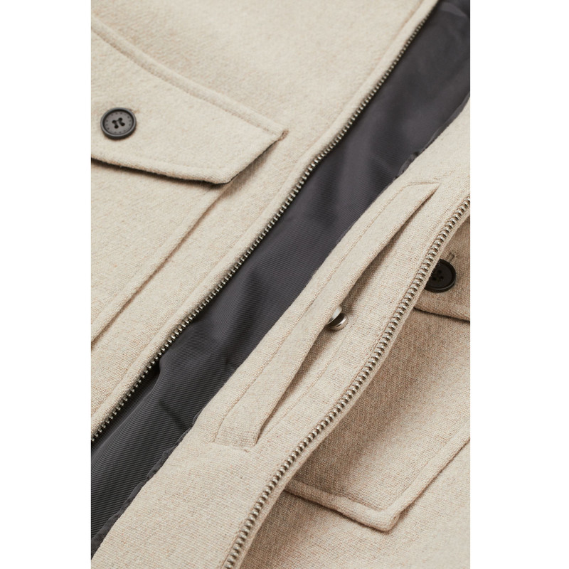 جزئیات : کت در ترکیب پشم نمدی با یقه و زیپ جلو. آستین بلند با چاک و سرآستین دکمه دار. جیب سینه و دکمه و یک جیب داخل با دکمه گیر. سجاف راست.