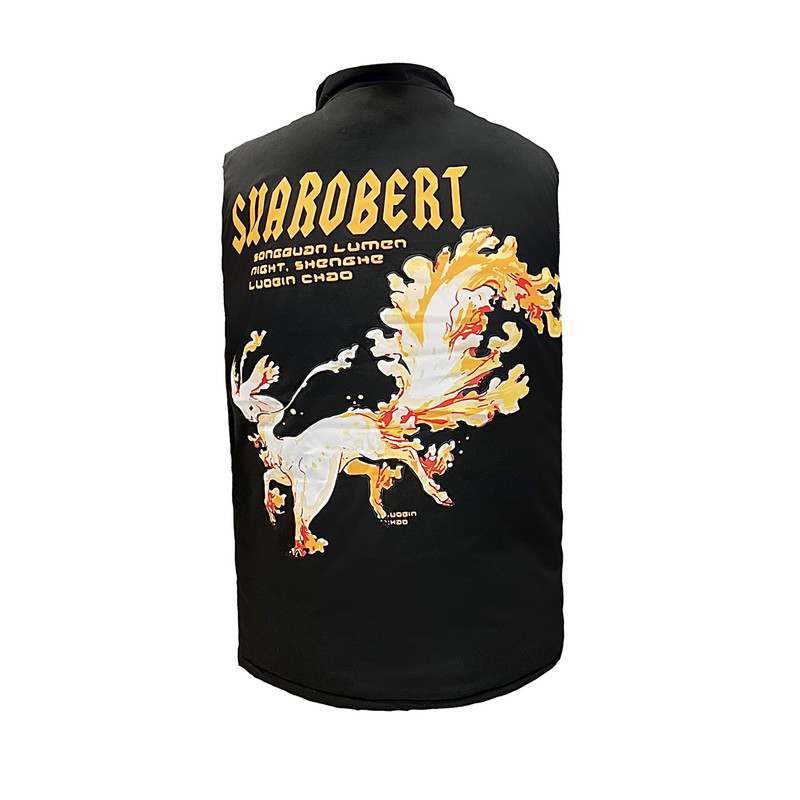 در پشت و روی کار چاپ وجود دارد . داخل پافر پشم شیشه قرار دارد و در فصول سرد سال کاربردی است . یقه به صورت ایستاده و پارچه از جنسی با دوام است ، همچنین پافر دارای دو جیب جا دار است .