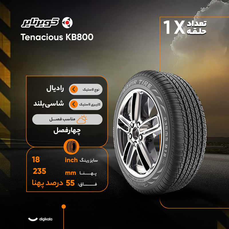 لاستیک خودرو کویر تایر مدل Tenacious KB800 سایز 18 / 55 / 235 میلی‌متر تولید سال 2024 - 1 حلقه