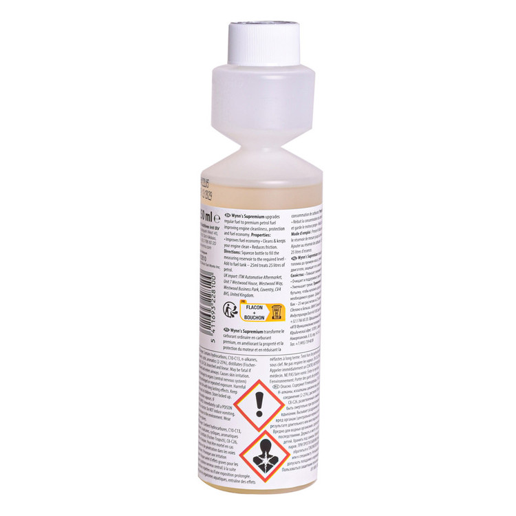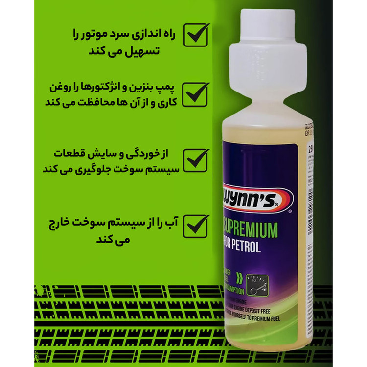 روش استفاده: محصول ۲۵۰ میلیلیتری را قبل از سوختگیری به باک اضافه کنید. این محصول ایمن برای کاتالیزور اگزوز و سنسور اکسیژن است.