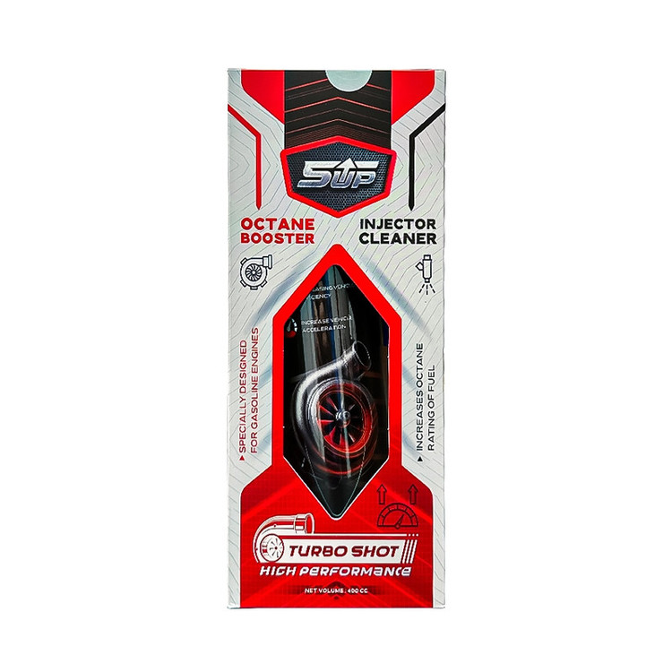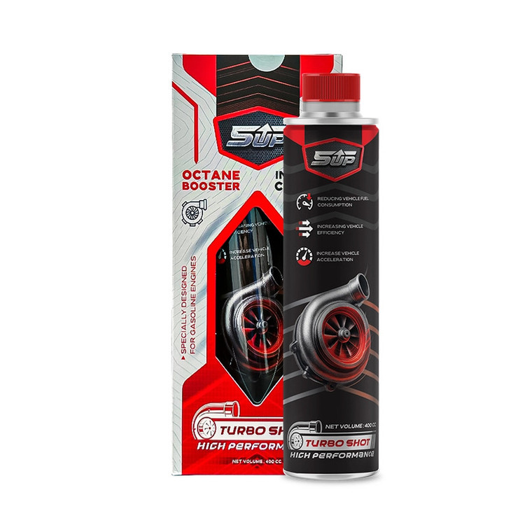 یک بطری کامل ۴۰۰ میلیلیتری 5UP Turbo Shot را به باک سوخت اضافه کنید. بهترین زمان مصرف، قبل از سوختگیری یا هنگام پر بودن باک است.