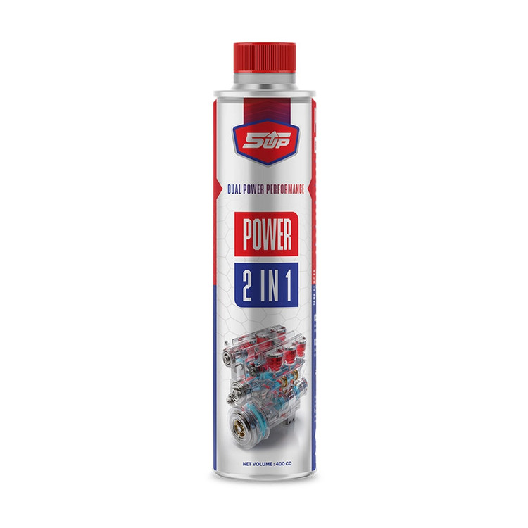 یک بطری کامل ۴۰۰ میلیلیتری 5UP Power 2 in 1 را به باک سوخت اضافه کنید. بهترین زمان استفاده، قبل از سوختگیری یا هنگام پر بودن باک است.