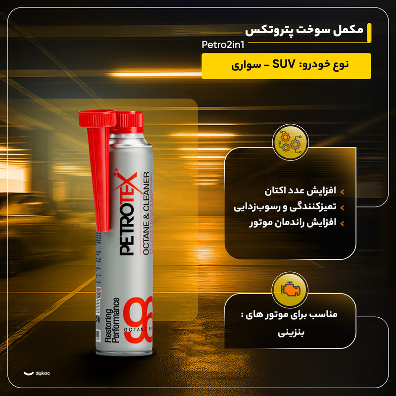 کارکرد مکمل: افزایش عدد اکتان , تمیزکنندگی و رسوبزدایی , افزایش راندمان موتور