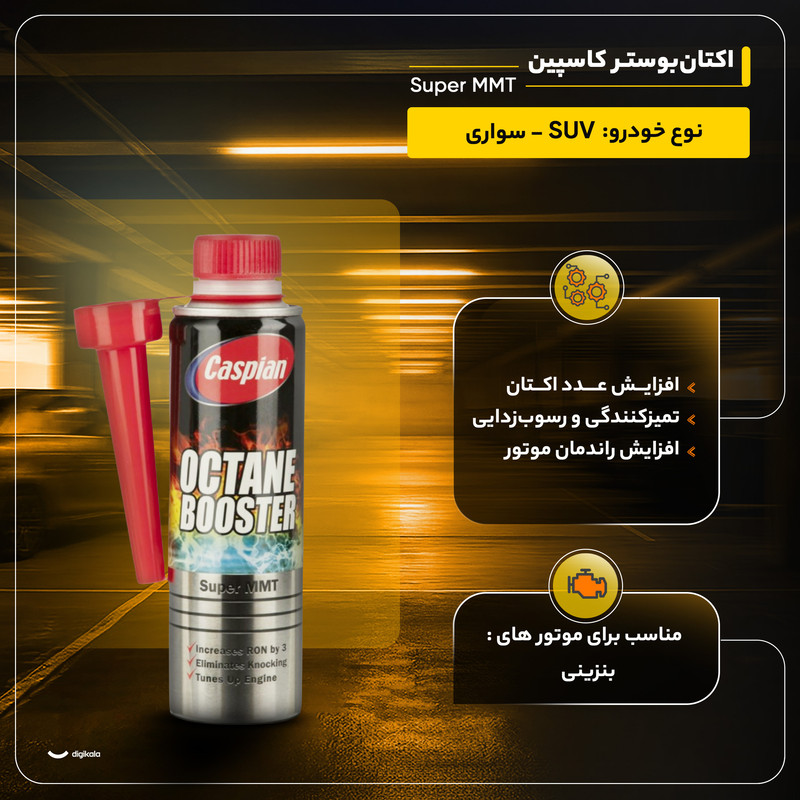 این محصول که در دسته مکمل سوخت قرار میگیرد، یک اکتانبوستر قدرتمند است که عملکردی چندوجهی را برای بهبود کیفیت سوخت و سلامت موتورهای بنزینی فراهم میکند. این مکمل در قوطیهایی با حجم ۳۰۰ میلیلیتر عرضه میشود. کارکرد مکمل Super MMT چندگانه است و مهمترین عملکرد آن شامل افزایش عدد اکتان است که به کاهش ناک زدن موتور و بهبود عملکرد کلی احتراق کمک میکند. علاوه بر این، این فرمولاسیون دارای خاصیت تمیزکنندگی و رسوبزدایی از سیستم سوخترسانی بوده که به طور مستقیم منجر به افزایش راندمان موتور میشود. این مکمل برای طیف گستردهای از خودروها شامل سواری و SUV توصیه میشود. به طور خاص، برای خودروهایی همچون انواع مدلهای پژو مانند ۲۰۰۸، ۲۰۶، ۲۰۷، ۴۰۵، و پارس و همچنین طیف وسیعی از محصولات ام وی ام شامل مدلهای X33، X55 و ۳۱۵ کاملاً مناسب است.
