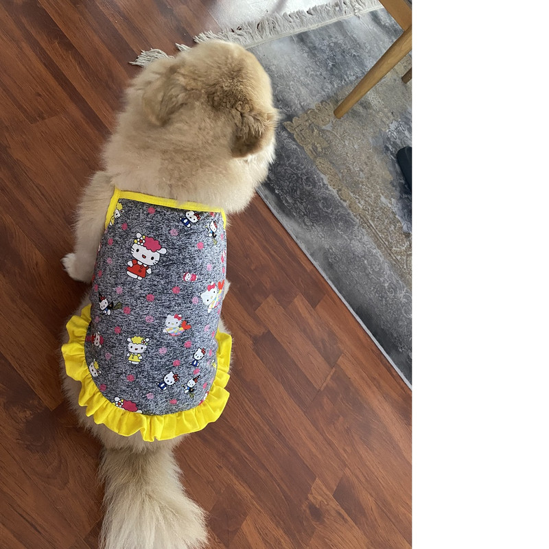 جنس این لباس از تریکو است و خیلی نرم است و تن پت را اصلا اذیت نمیکند و از ریزش مو جلوگیری میکند و جنس بسیار خوبی دارد هنگام خرید توجه بفرمایید سایز S این لباس مناسب برای دور سینه از 38 تا 43 سانتیمتر است و قد لباس 31 سانتیمتر است