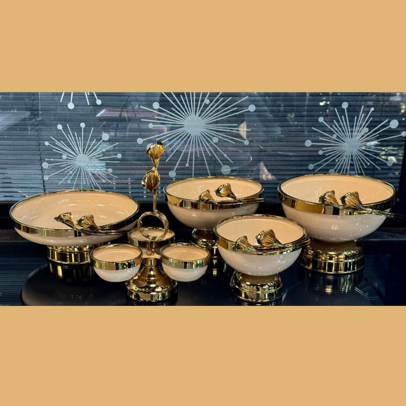 رنگهای موجود: سفید، مشکی، کرم – همه قابل ست شدن با دکورهای مدرن، کلاسیک یا مینیمال. این سرویس هم برای پذیرایی روزمره عالیه، هم برای مهمانیهای خاص یا حتی جهیزیهی عروس.