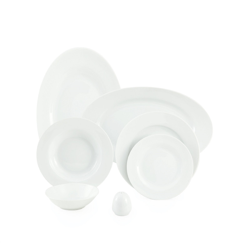 اقلام سرویس: سالادخوری , دیس , بشقاب غذاخوری , بشقاب خورشخوری , پیشدستی , نمکپاش و فلفلپاش