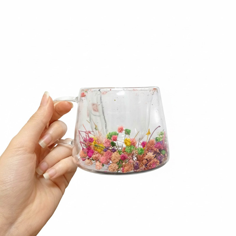 فنجان پیرکس دوجداره با گل خشک طبیعی بین دو جداره، ترکیبی زیبا از هنر و کارایی را به نمایش میگذارد. طراحی شفاف و مدرن آن جلوهای چشمنواز به میز شما میبخشد و با تکان دادن فنجان، گلهای خشک درون آن به آرامی حرکت میکنند . این محصول از شیشه پیرکس مقاوم ساخته شده و ساختار دو جداره آن نوشیدنی را مدت طولانیتری گرم یا خنک نگه میدارد . برای سرو انواع نوشیدنی گرم و سرد در منزل، کافیشاپ و محیط کار ایدهآل است