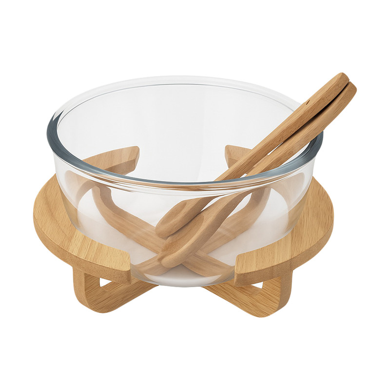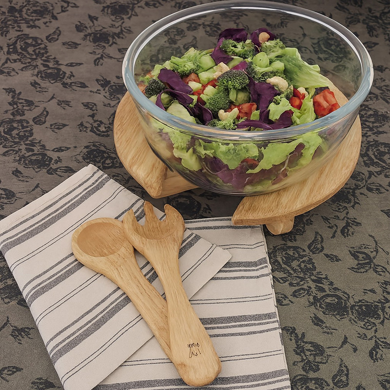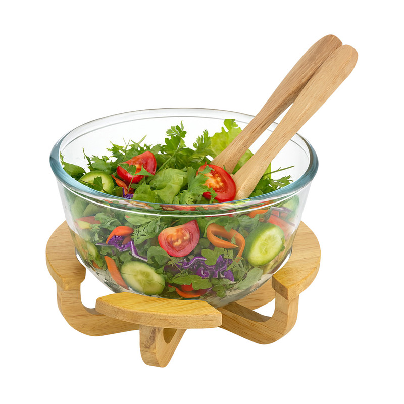 آماده کردن یک میز زیبا و شکیل نشاندهنده سلیقه شماست. استفاده از ظروفی که یک بخش آنها چوبی است علاوهبر زیبایی، به راحتی با دیگر وسایل میز ست میشود. سرویس پذیرایی و ظروف غذاخوری از مهمترین وسایل مورد نیاز در هر خانه هستند. ظروف سالاد یکی از خاصترین ظروفی هستند که مورد استفاده قرار میگیرند. اکثرا این ظرف را در پذیراییها در وسط سفره یا میز قرار میدهند. ظرف سالاد ال وی با کد 6353461460536 به همراه قاشق و چنگال با داشتن پایه چوبی و یک کاسه از جنس شیشه انتخاب مناسب برای هر فرد با سلیقه است. ابعاد کالا به شکلی است که بهراحتی برای مهمانیهای خود قادر به استفاده از آن هستید. در صورتی که بهدنبال یک ظرف سالاد زیبا که مناسب برای پذیرایی از مهمان باشد هستید، این محصول با کیفیت را به شما پیشنهاد میکنیم.