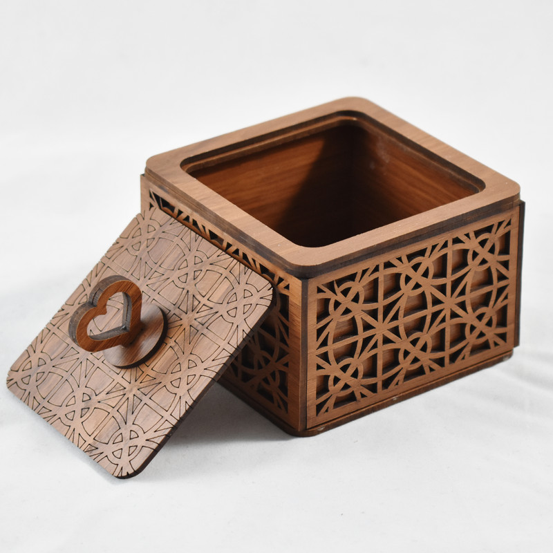 دستهبندی: قندانوزن: 150 گرمجنس: امدیافسایر توضیحات: - کالای فوق از جنس ام دی اف دو طرف روکش دار ساخته شده است - قابل استفاده برای قند و شکلات و ... می باشدابعاد: 10x10x7 سانتیمتر