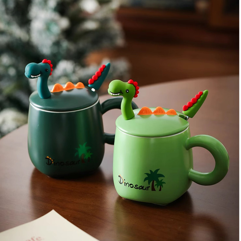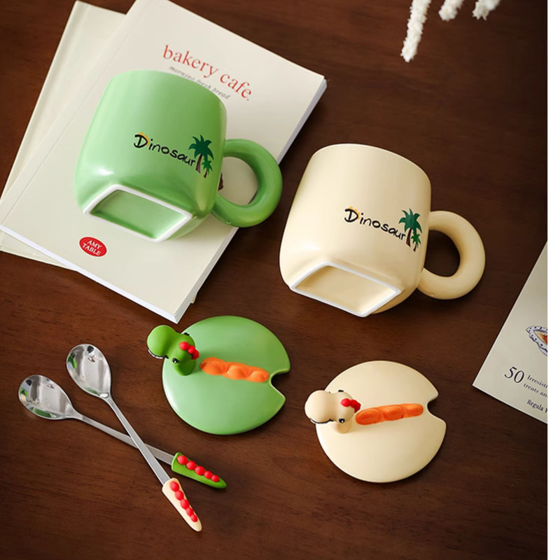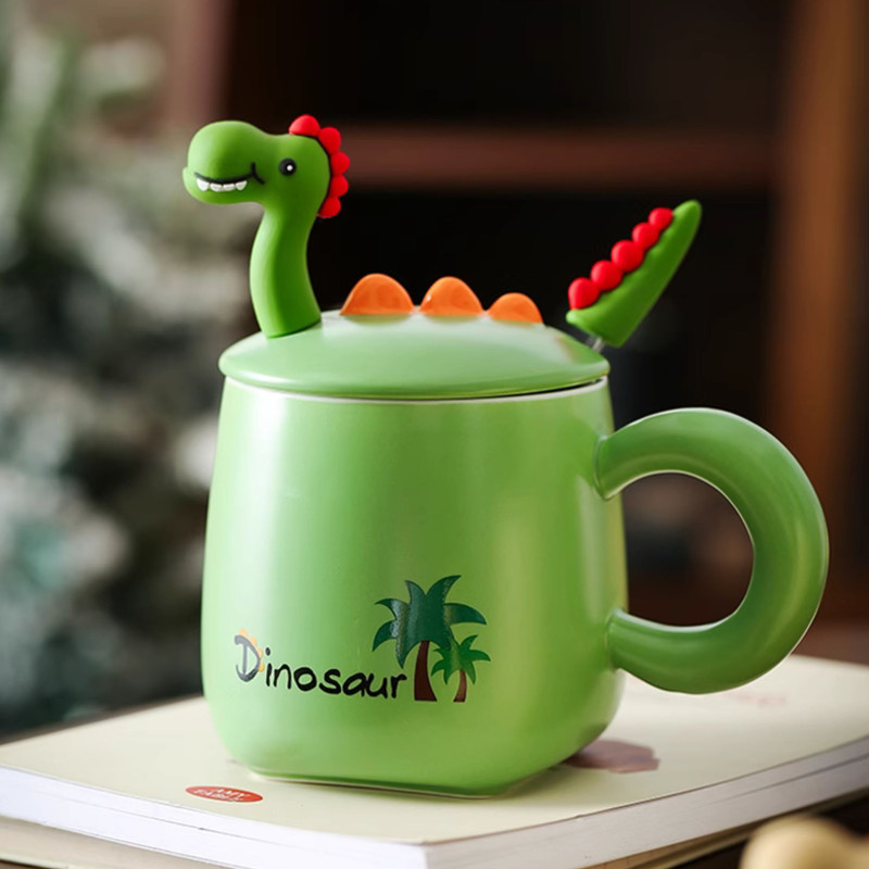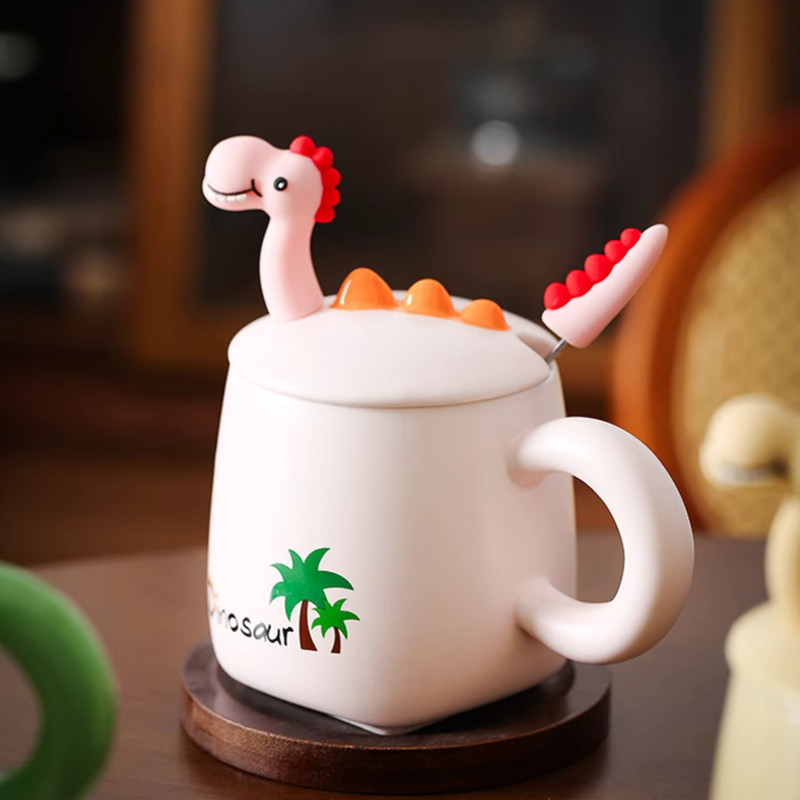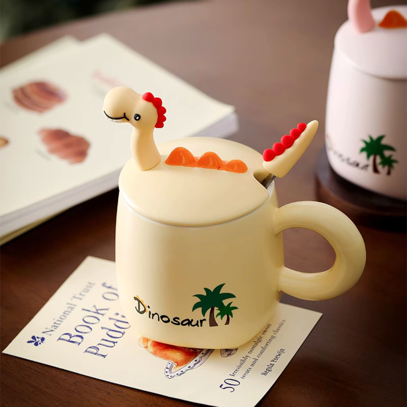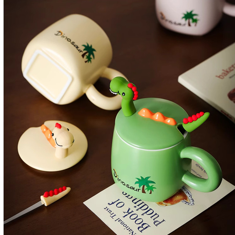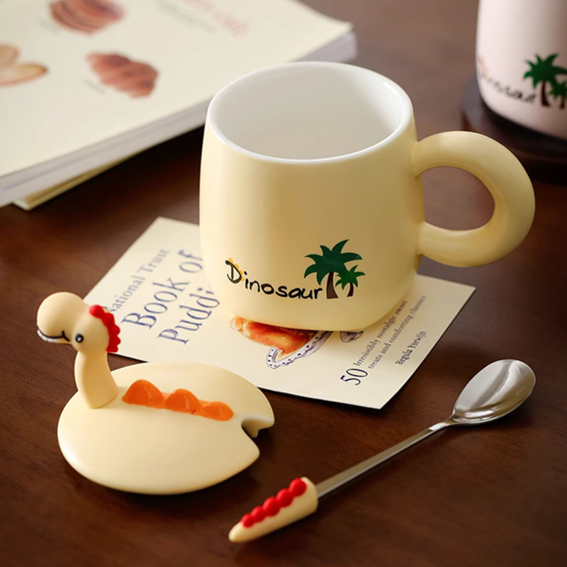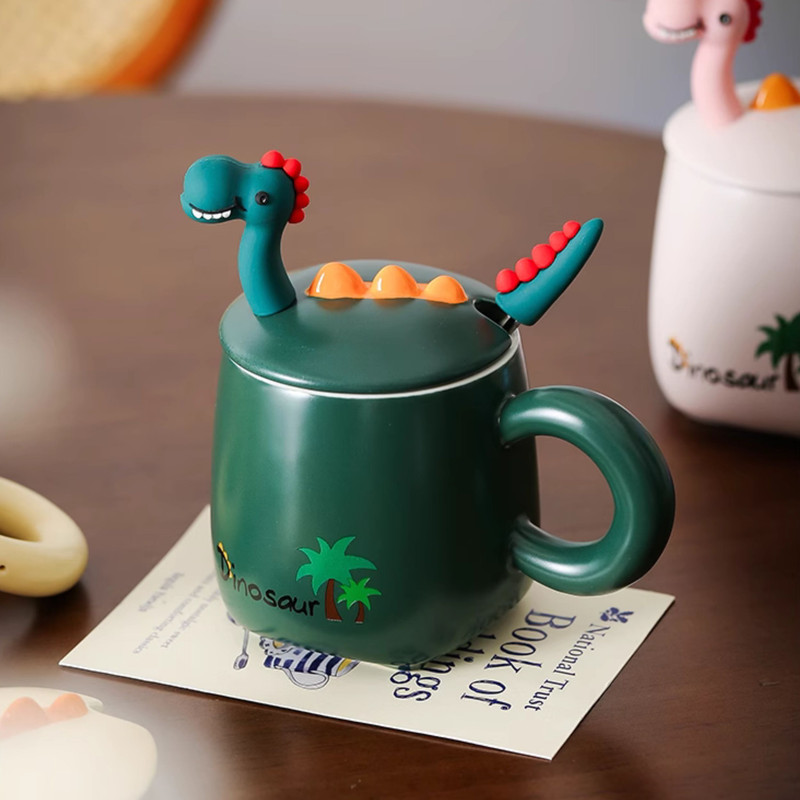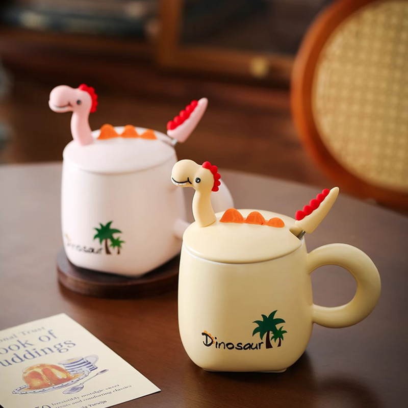 طراحی منحصر به فرد: طرح دایناسور دوستداشتنی بر روی درب سرامیکی، این ماگ را به هدیهای ایدهآل برای شما تبدیل کرده است.