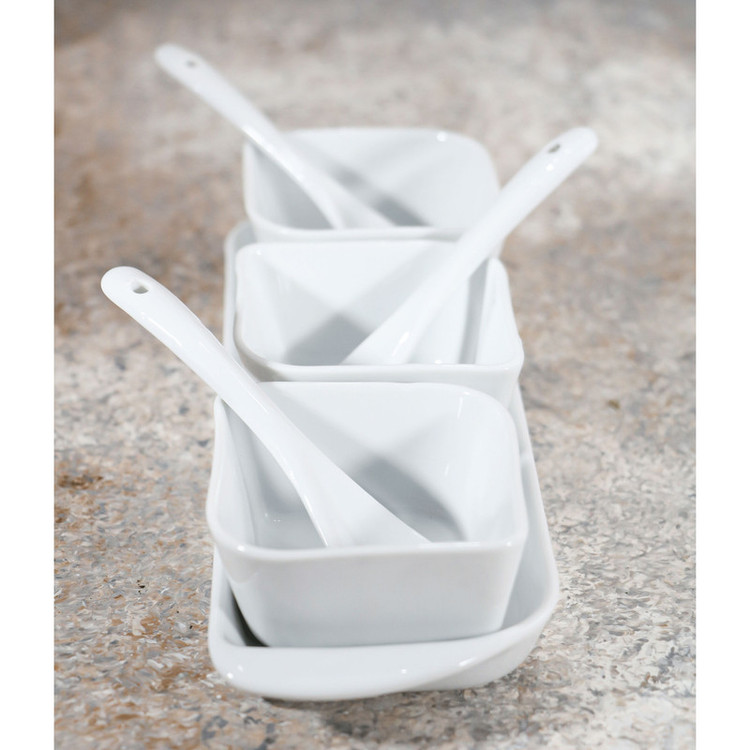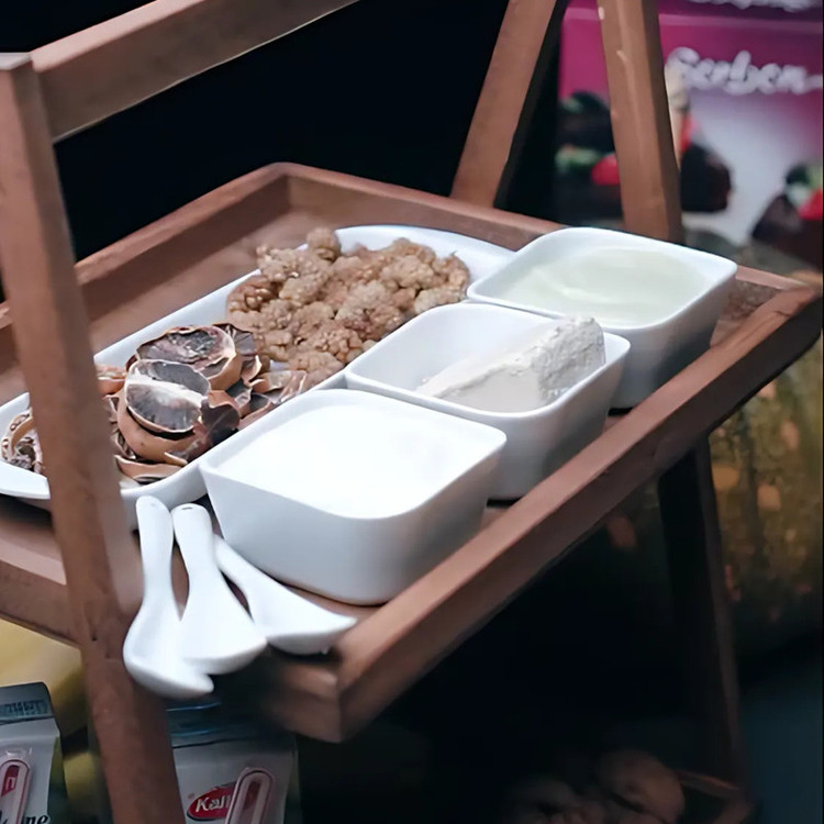 توضیحات ابعاد ظروفسینی: 24x8 سانتیمتر - پیاله: 7x7x4 سانتیمتر - طول قاشق: 12 سانتیمتر