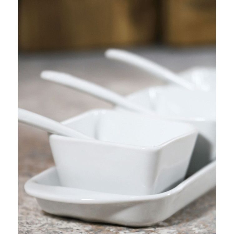 توضیحات ابعاد ظروف: سینی: 24x8 سانتیمتر - پیاله: 7x7x4 سانتیمتر - طول قاشق: 12 سانتیمتر