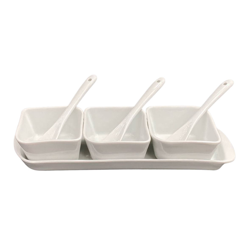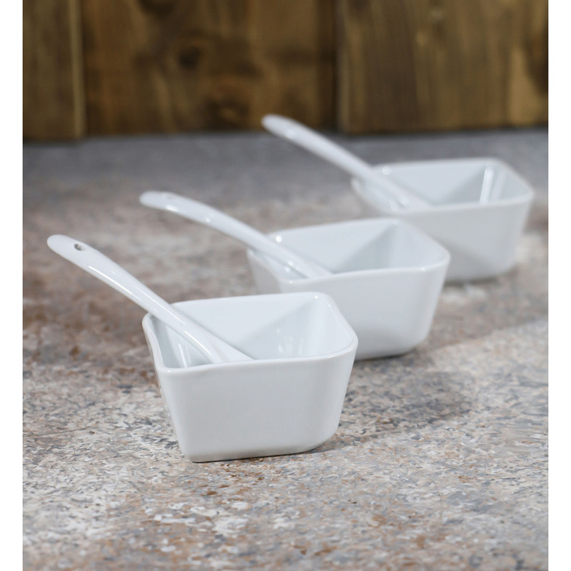 توضیحات ابعاد ظروفسینی: 24x8 سانتیمتر - پیاله: 7x7x4 سانتیمتر - طول قاشق: 12 سانتیمتر