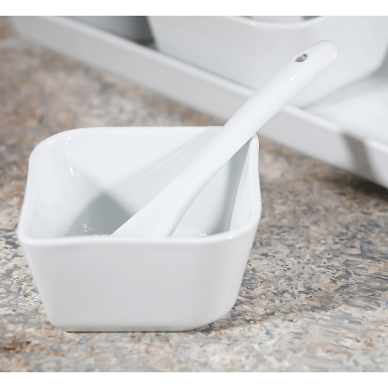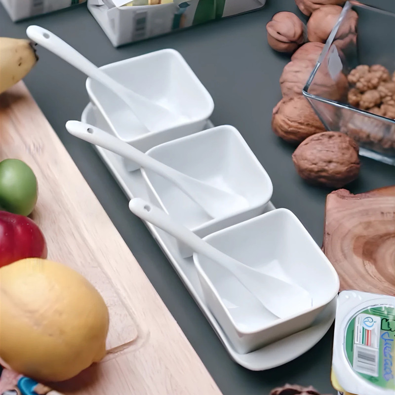 توضیحات ابعاد ظروف: سینی: 24x8 سانتیمتر - پیاله: 7x7x4 سانتیمتر - طول قاشق: 12 سانتیمتر