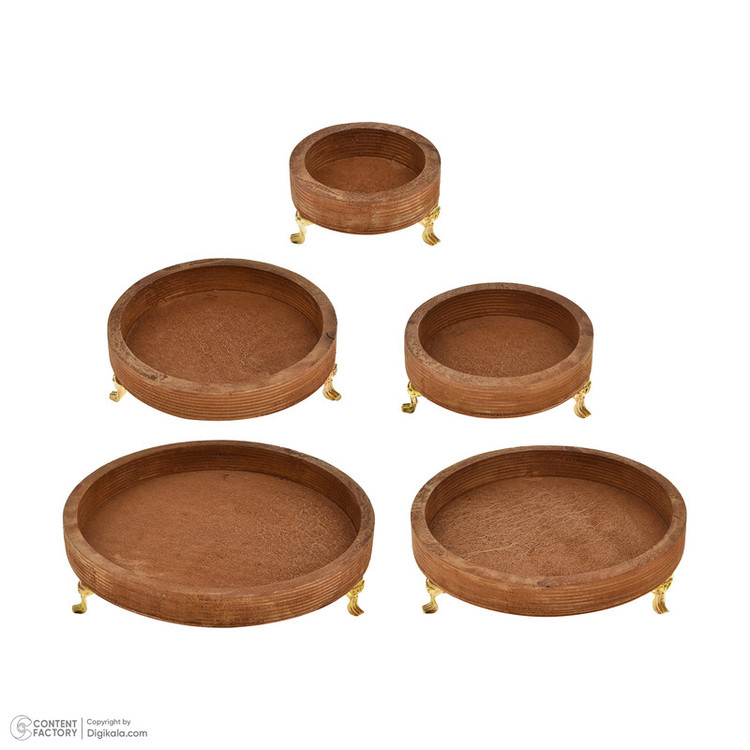توضیحات ابعاد ظروف: از ظرف کوچکتر به بزرگتر: 23x23 - 19.5x19.5 - 16.5x16.5 - 13x13 - 10x10 سانتیمتر - ارتفاع: 5.5 سانتیمتر