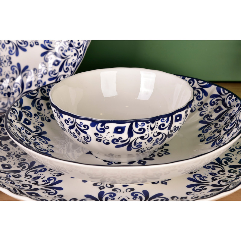 سرویس غذاخوری 26 پارچه گلدن اوپال مدل بن سای blue از جنس آرکوپال می باشد .این سرویس قابل استفاده در مایکروویو و ماشین ظرفشویی نیز هست.این سرویس شامل :6 عدد بشقاب غذاخوری ، 6 عدد بشقاب خورشت خوری ، 6 عدد بشقاب میوه خوری ، 6 عدد پیاله ، یک عدد دیس و همچنین دارای یک عدد کاسه سوپ و 2 عدد نمکدان می باشد