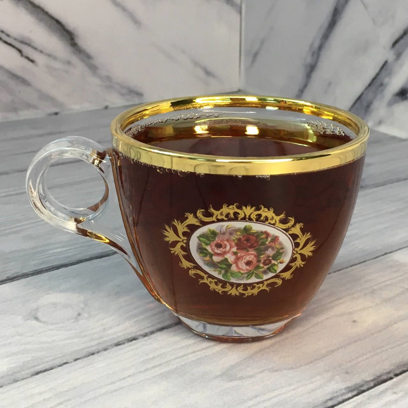 فنجان بلینک مکس طرح لب طلا و گلدار مدل چری