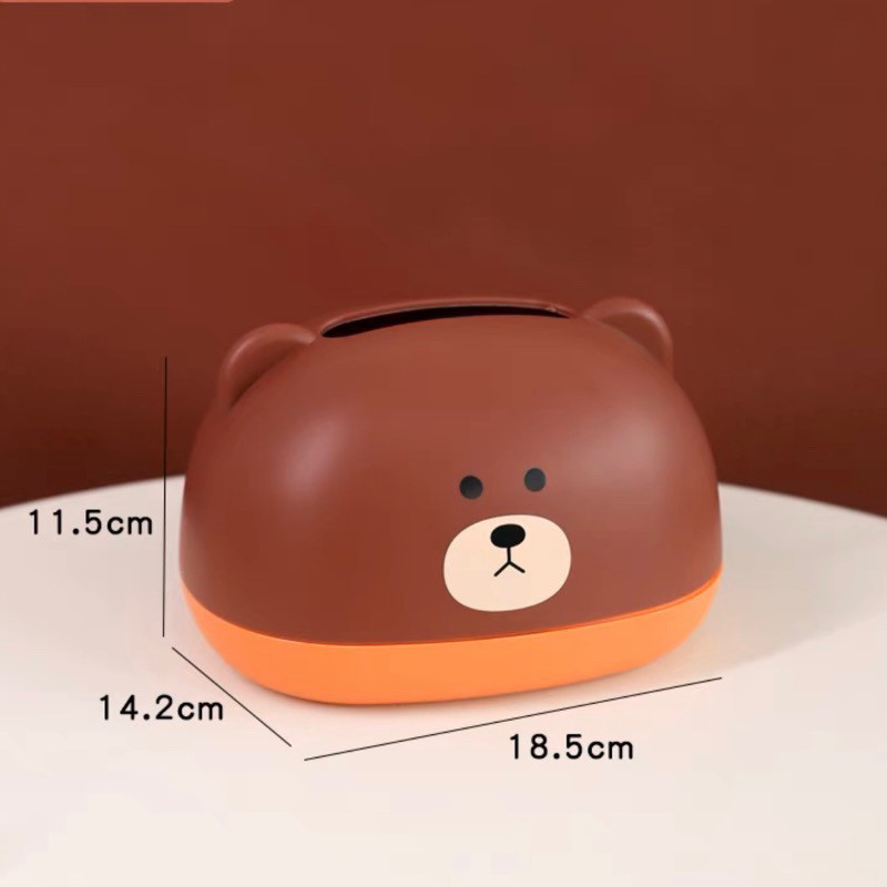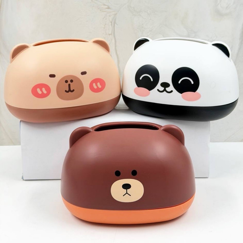 این مدل جعبه دستمال کاغذی در رنگ قهوه ای (طرح خرسی) و پاندا و کاپی بارا اراِئه میشود. مناسب اتاق،خانه و محل کار. جنس آن از پلاستیک ABS ساخته شده و این محصول وارداتی می باشد با کیفیت عالی.