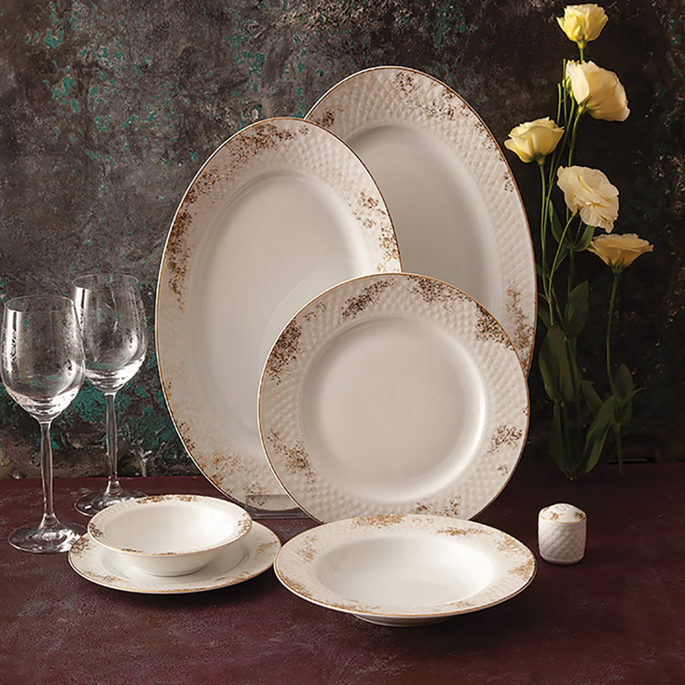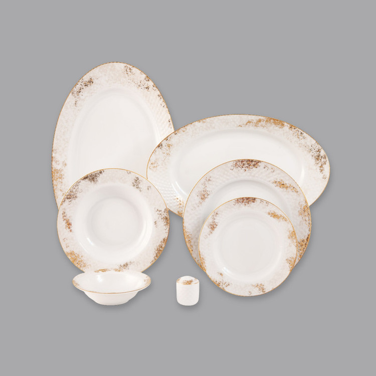 اقلام سرویس: سالادخوری , دیس , بشقاب غذاخوری , بشقاب خورشخوری , پیشدستی , نمکپاش و فلفلپاش