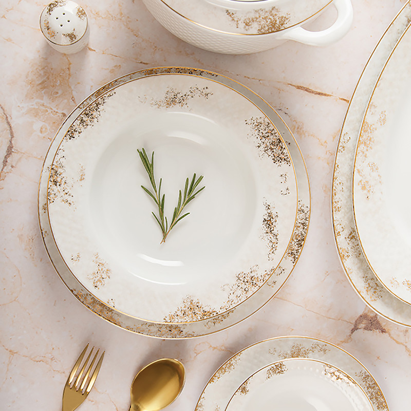 اقلام سرویس: سالادخوری , دیس , بشقاب غذاخوری , بشقاب خورشخوری , پیشدستی , نمکپاش و فلفلپاش
