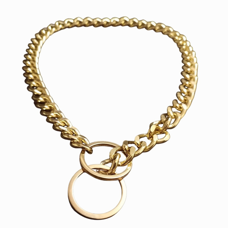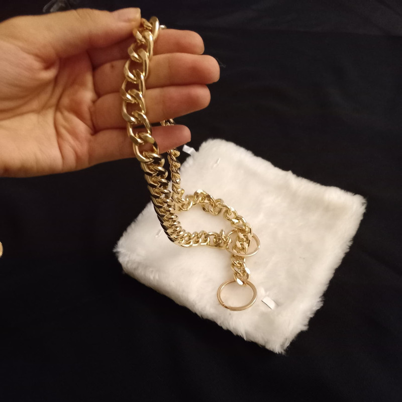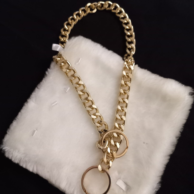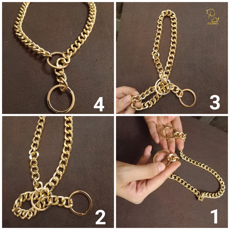قلاده در طرح کارتیر درشت است که طول زنجیر 50 سانتی متر بوده و از جنس آلومینیوم است. زنجیر قابل تنظیم به وسیله دو حلقه می باشد. این محصول بعنوان قلاده گردنی برای سگ های قدرتی مناسب نیست. جهت ماندگاری و دوام رنگ، بهت است در تماس با آب و مواد شیمیایی و سایش قرار نگیرد.