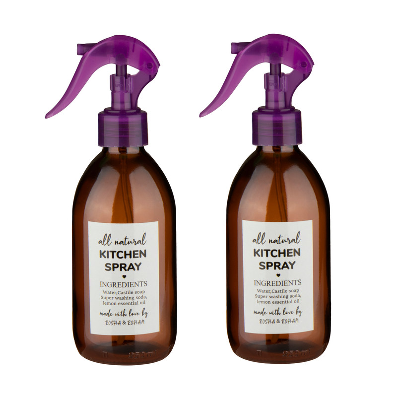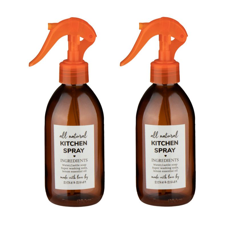 ظرف شیشه ایی با حجم 250 میل بهمراه اسپری مینی تریگر قفل دار وارداتی در 6 رنگ جهت کاربری در منزل و آشپزخانه و سرویس بهداشتی و ...این محصول را میتوان جهت روغن و زعفران و آبلیمو سرکه و الکل و ...وهر نوع محلول رقیق استفاده نمو.