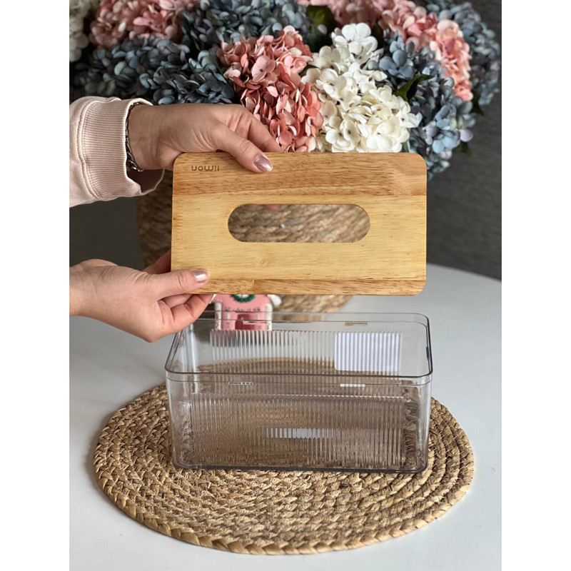 این جای دستمال کاغذی از برند معتبر لیمون، با طراحی مدرن و ترکیبی، انتخابی ایدهآل برای نظمبخشی و زیبایی میزهای پذیرایی است. بدنه اصلی این کالا از جنس اکریلیک شفاف و درجه یک ساخته شده است که علاوه بر مقاومت بالا، امکان مشاهده میزان دستمال باقیمانده را به راحتی فراهم میکند. درب این محصول از چوب مرغوب با پرداخت صیقلی طراحی شده است که گرما و اصالت خاصی به ظاهر مینیمال آن میبخشد. استفاده از متریال باکیفیت در ساخت کد ۲۳۷۲ باعث شده است تا این محصول در برابر رطوبت مقاوم باشد و به مرور زمان تغییر رنگ ندهد. همچنین طراحی استاندارد آن، فرآیند استفاده و شارژ مجدد دستمال را بسیار ساده نموده است.