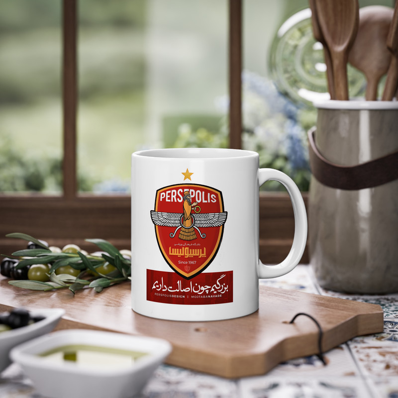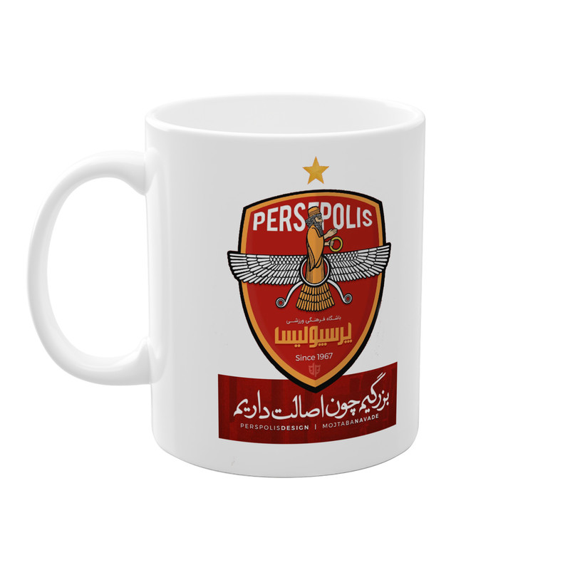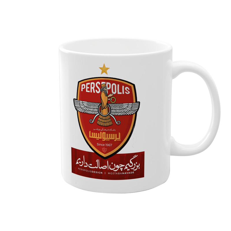 ماگ پادآفرین مدل فوتبال لیگ پرسپولیس بزرگیم چون اصالت داریم کد 066