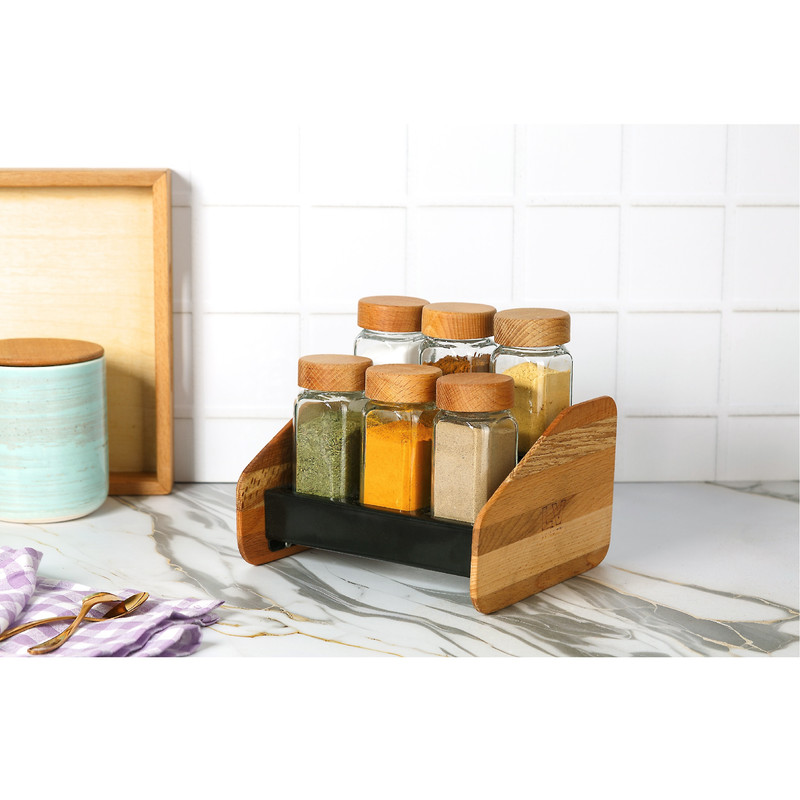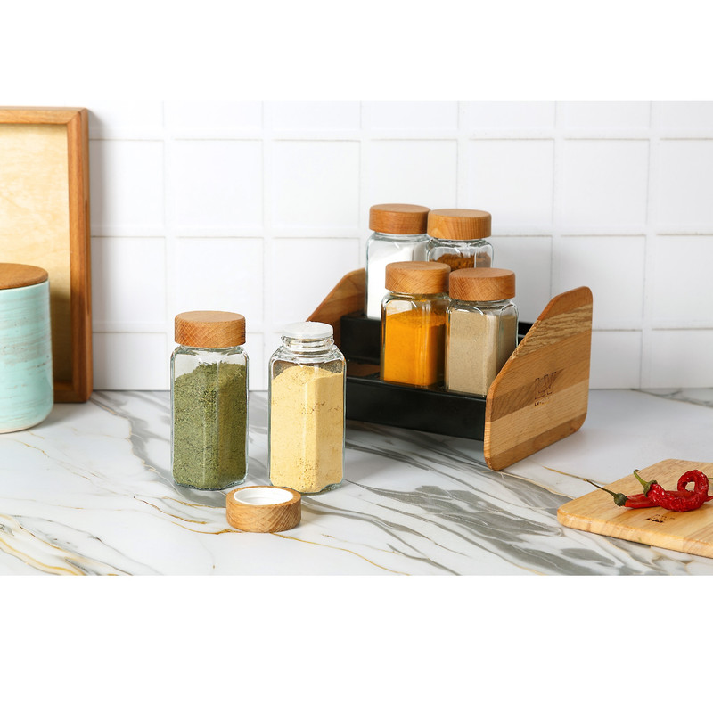 6 عدد ادویه پاش شیشه ای با درب چوبی (ساخته شده از چوب راش) میتواند زیبایی خاصی به آشپزخانه شما بدهد. امکان استفاده برای انواع ادویه و نمک و فلفل و ...این ست با بکار گیری طراحی صنعتی و استفاده از تجهیزات منحصر به فرد تولید شده تا بتواند در جزییات دقت بالایی داشته باشد.کیفیت بالا و قیمت مناسب این محصول همراه شما خواهد بود.