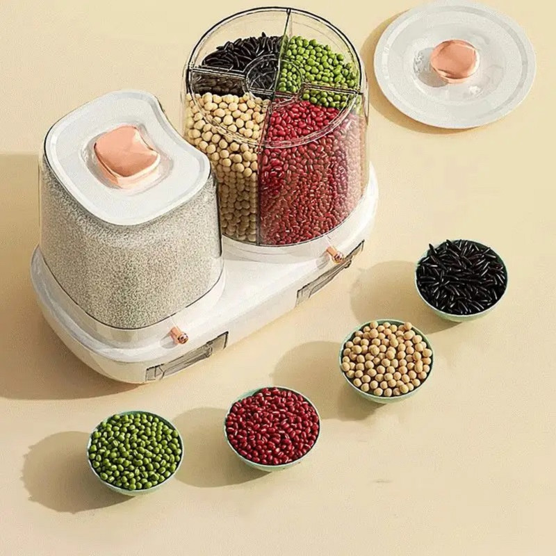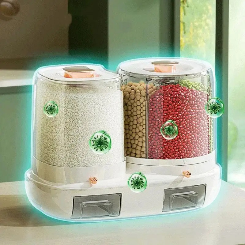 ظروف همه کاره و استفاده: ظروف نگهداری غلات می توانند فضای ذخیره سازی برنج و سایر غذاهای خشک مانند فضای ذخیره سازی آرد، لوبیا، تنقلات، غلات، قهوه، چای، غذای حیوانات خانگی و غیره را در خود جای دهند.
