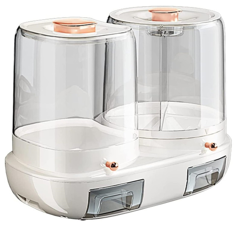 صرفه جویی در فضا: سطل برنج چرخان را می توان در گوشه قرار داد، فضای آشپزخانه را به حداکثر رساند و چیزها را مرتب نگه داشت. دستگاه های پخش غذای چرخشی برای میز، قفسه های انباری، یخچال، فریزر، کمد، کمد، کمد و غیره ایده آل هستند.