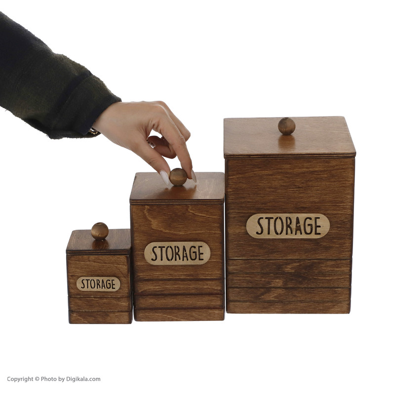 باکس چوبی با رنگ قهوه ای طرح چوب در سه سایز20x15x15 و 15x11x11 و 9x8x8 سانتی متر می باشد و در آشپز خانه جهت مصارف گوناگون از جمله پا سماوری استفاده می گردد.