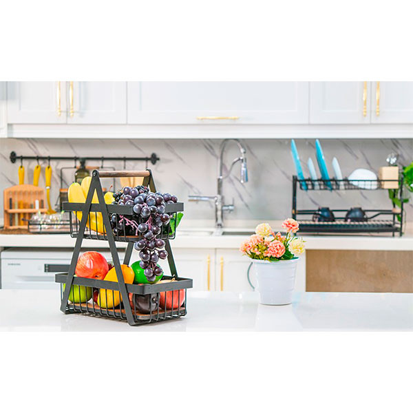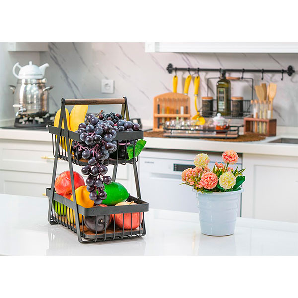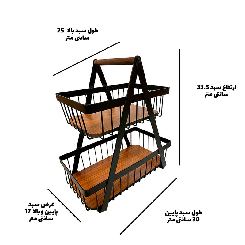یک از بهترین سبد های میوه در بازار سبد میوه سالوت می باشد. این سبد بسیار با کیفیت و از مواد درجه یک فلزی برای ساخت آن استفاده شده است. این سبد میوه خاص 2 طبقه بسیار پر طرفدار در بازار می باشد. در داخل سبد برای کف آن از چوب برای زیبای هرچه بیشتر از چوب استفاده شده است که چوب ها قابل شستشو میباشند. اگر عکس های آلبوم را ملاحظه بفرمایید ابعاد سبد کاملا مشخص شده است. از این سبد می شود مصارفی همچون سبد میوه، سبد جای ادویه، سبد نان و.... استفاده نمود. خرید این محصول خاص را هم برای هدیه هم برای مصرف شخصی حتما پیشنهاد میکنیم.